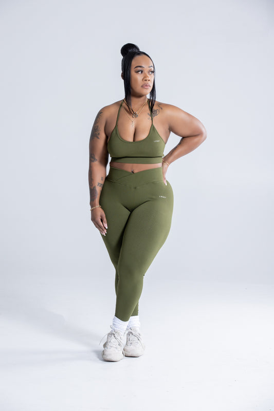 Crossover V Front | Seamless Ribbed Leggings | Green